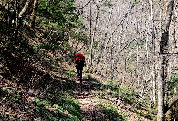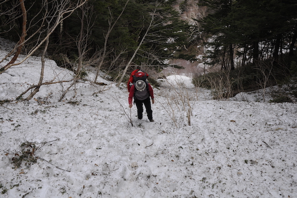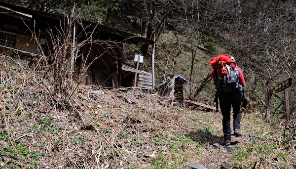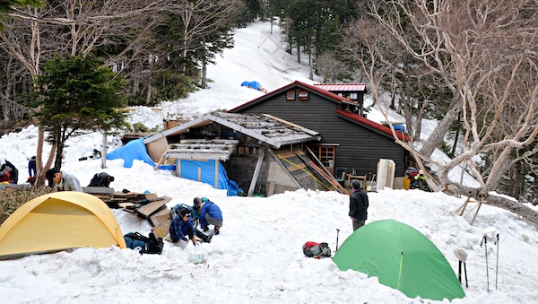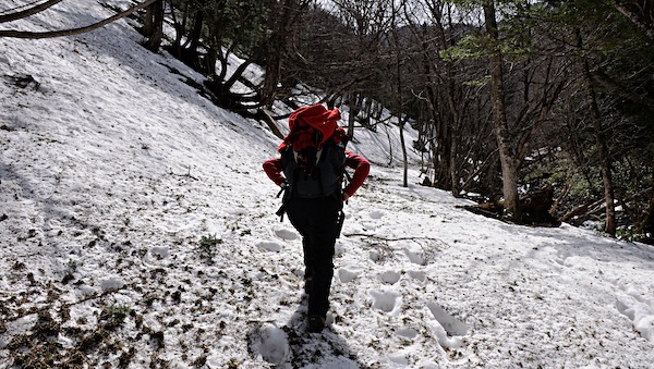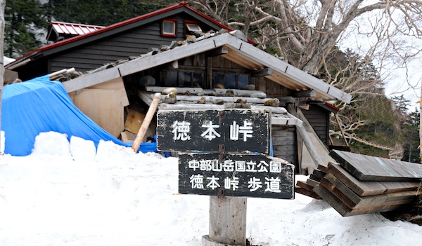 長い間憧れていた峠と小屋は新しい建物を背にやっと雪から顔を出し登山者を迎えています。山の本などで出てくるたびに歩いてみたいと思っていましたが長い年月がたってしましました。そんな深い思いを受け止めてくれる素晴らしい上高地への道でした。